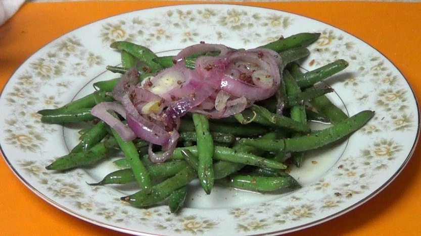 - Lavar, despuntar y cortar las habichuelas en pedazos de 1 o 2 centímetros de largo, hervir en agua durante 10 minutos o cocinadas al vapor. Deben quedar crujientes. Escurrir y dejar enfriar.
