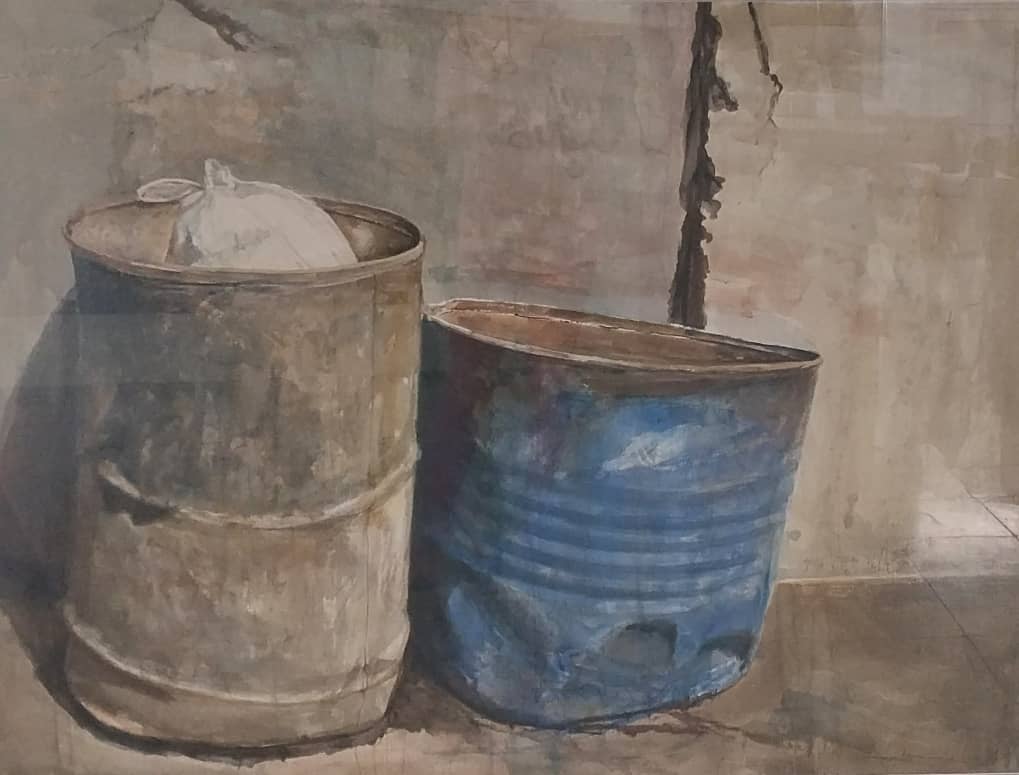 La muestra está compuesta por seis piezas de mediano formato relativamente homogéneas entre sí, aunque cada una se distancia de las demás en su enfoque, donde el diálogo entre lo tangible y lo simbólico alcanza nuevas dimensiones, bajo el título “Ámbitos divergentes”, cuatro piezas de gran formato y dos medianas realizadas en acuarela, dibujo y pastel, técnicas que reflejan la versatilidad y riqueza expresiva de su estilo, una habilidad de manifestar el pincel en varios ámbitos.