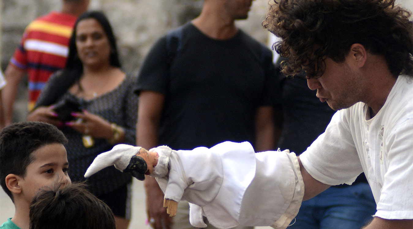 Resulta fácil encontrar al grupo de teatro guiñol “Polichinela en La Habana”; solo basta distinguir las risas y carcajadas que se reúnen todos los fines de semana en la Plaza de San Francisco de Asís, en La Habana Vieja.