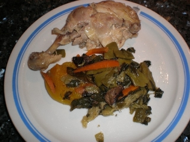 Una vez que todo esté cocido, retira la bandeja del horno. Sirve el pollo con las verduras asadas en platos individuales y disfruta de tu deliciosa bandeja de verduras asadas con pollo.