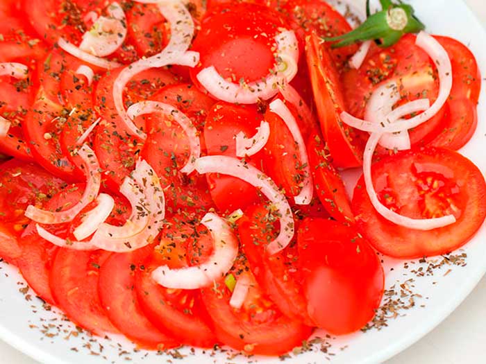 -Se coloca el pepino y el tomate en el plato y se añade la pimienta