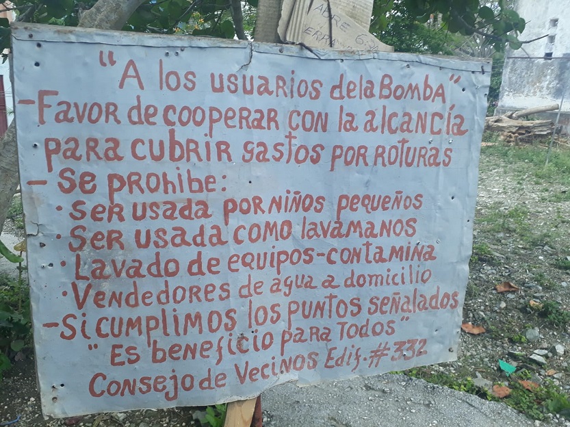 Entonces es que tomo conciencia de que tampoco existen ya otras que había en portales y zonas asequibles para el uso público y que tanto abundaban en la capital villaclareña, al punto de que en la década de los años 70 del siglo pasado, un colega hizo un reportaje en el cual se refería a la cantidad de esas bombas en la ciudad. También es el momento preciso en que llego a la conclusión de que una de las pocas que persisten en Santa Clara, si no la única, puesta a disposición de todos, es la existente en el Reparto Escambray, frente al edificio 332, a donde acuden personas que recorren largas distancias para abastecerse del líquido.