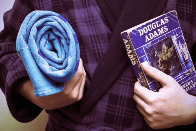 Curiosidad 2: Cada 25 de mayo se celebra el Día de la Toalla en honor a Douglas Adams. En conmemoración a la fecha, las personas llevan una toalla todo el día y comparten fotos con esta en las redes sociales con el #TowelDay. Se le dedica esa jornada a la toalla porque, según el libro, es el objeto más útil que puede poseer un autoestopista interestelar.