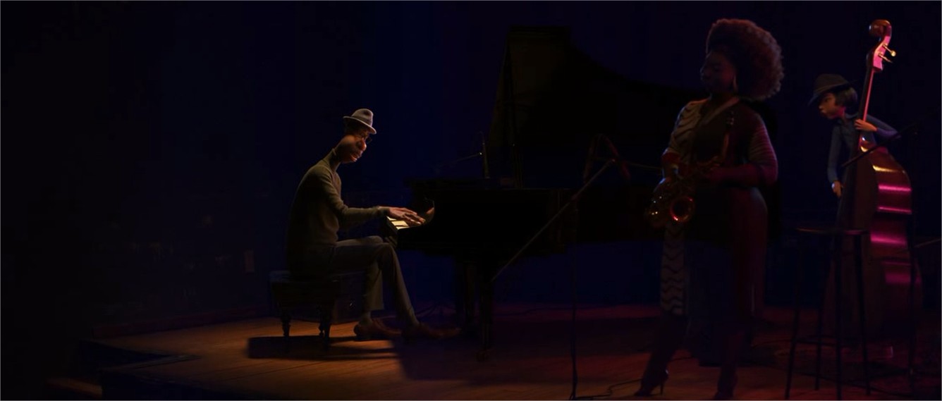 Soul (siguiendo la afable tendencia de títulos cortos) fue impregnada con la habilidad de reflejarnos emociones y sensaciones tan cercanas que maravillan, muy parecida a Inside Out (otra experimentación animada sobre la fundamentación teórica de la vida desde las emociones mismas). Un claro ejemplo sería el momento en que Joe obtiene la oportunidad de “hacer realidad sus sueños”. Es ese sentimiento de invencibilidad que llega a cada ser humano cuando la felicidad es completa, cuando transitamos por el camino que tal vez nos toca, ese que llaman destino. Joe experimenta un instante de victoria tan glorioso que por más obstáculos peligroso que se le antepongan, nada logra importunarlo. Aunque después, irónicamente y a lo película de muñequito en fin, se caiga por una alcantarilla, segundos antes de presentarnos el segundo mundo que le da forma a esta obra tras el telón.