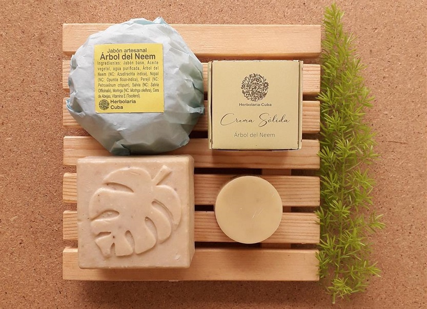 Jabón artesanal y crema sólida de Neem. (Foto:Rita Rosa Rivera/Cubahora)