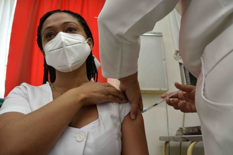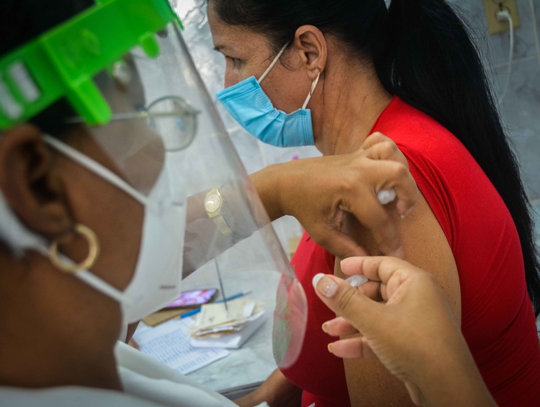 Intervención sanitaria con el candidato vacunal Abdala, a grupos de riesgo de contraer la COVID-19, en el Centro Provincial de Higiene, Epidemiología y Microbiología, de la ciudad de Las Tunas. (Yaciel Peña De La Peña/ACN).