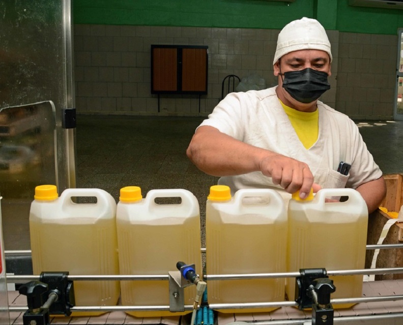 A pesar de las limitaciones, los trabajadores de la Empresa de Aceites y Grasas Comestibles garantizan la producción destinada al mercado interno, a la canasta normada, a organismos, y a sectores priorizados de la economía, en Camagüey. (Rodolfo Blanco Cué/ACN)