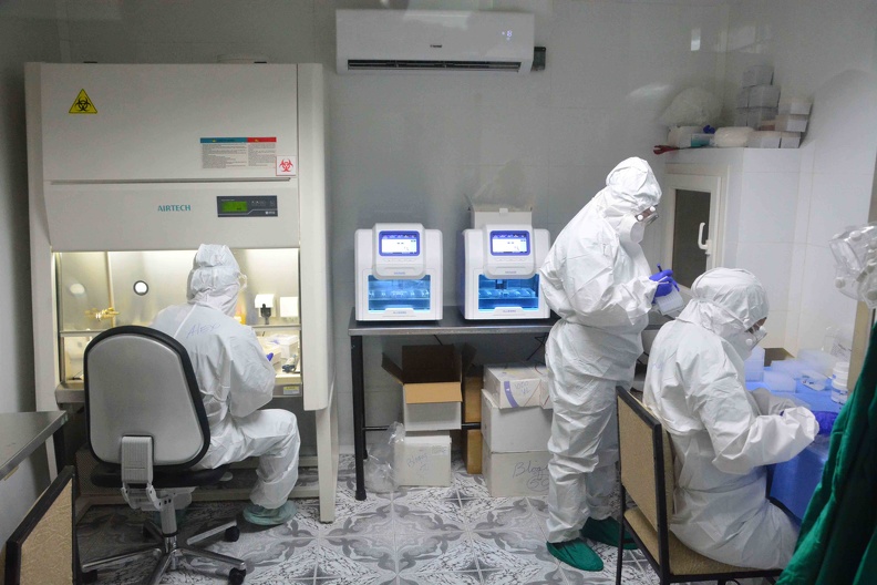 Especialistas laboran en el laboratorio de Biología Molecular, inaugurado en la ciudad de Bayamo, provincia de Granma. (Armando Ernesto Contreras Tamayo/ ACN)