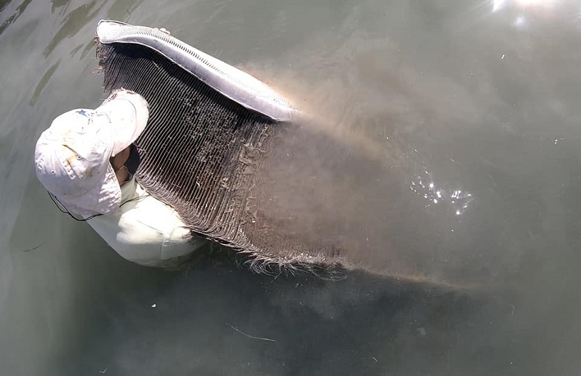 Sorprendente por sus 13 m de longitud, el cuerpo inerte, henchido de gases por la iniciada descomposición, fue rescatado para su posterior conservación esquelética por el personal del área protegida. (Joán Hernández/Naturaleza Secreta de Cuba)