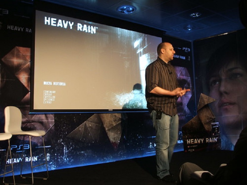 David Cage durante la presentación de Heavy Rain en Madrid, España, donde mostraba su nueva creación como parte del lanzamiento del videojuego. (Tomada de PlayStation.Blog)