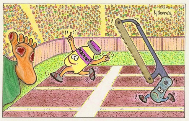 Curiosamente, el animado es fruto de la imaginación de uno de nuestros cinco héroes, Gerardo Hernández. “Le preguntamos a Gerardo si podía hacer un dibujo alegórico al Heberprot-P y tuvimos el honor de recibir una caricatura que habla por sí sola de la terapia. A partir de su idea, preparamos una postal que será distribuida entre los asistentes, así como el spot, que respeta el estilo y los colores del dibujo de Gerardo”, contó el secretario científico del congreso, Manuel Raíces, en conferencia de prensa.
