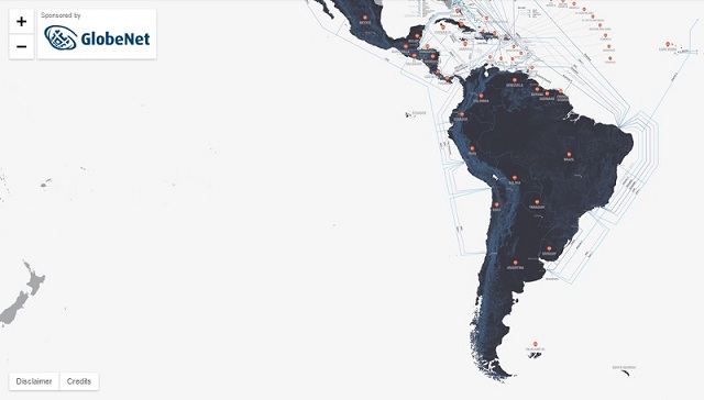 Mapa de los cables submarinos en América Latina. (Infografía: Nick Browning, Markus Krisetya, Larry Lairson, Alan Mauldin-TeleGeography).