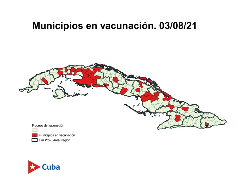 Sobre los municipios donde ya concluyó la aplicación de las tres dosis, la jefa del Departamento de Atención Primaria del Ministerio de Salud Pública de Cuba, señaló que el primer municipio fue la Isla de la Juventud, donde ya se aprecian los primeros resultados del control de la enfermedad.