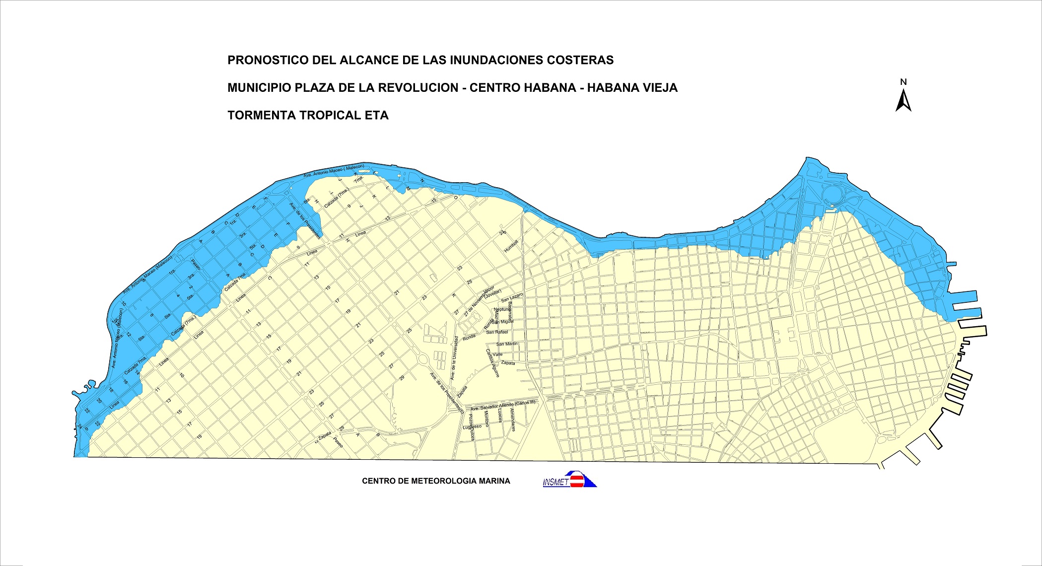 Mientras tanto, cuando pase al Norte habrá inundaciones costeras moderadas en las zonas más bajas del litoral Norte en el Occidente y Centro de Cuba. Esto comenzará hoy domingo al mediodía, aunque aumentará a partir de la noche y se extenderá hasta el martes. Las zonas aledañas al malecón habanero deben prestar especial atención.