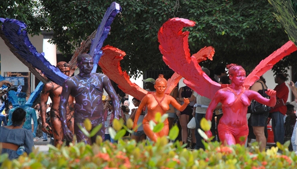 Pero en las Romerías de Mayo, cualquier cosa puede pasar y hasta los más inesperado puede estar de pronto frente a ti, en callejones y tiendas, en teatros o espacios públicos, en bibliotecas y hoteles. Por eso a nuestro paso por la ciudad tropezábamos con bandas de música, actuaciones danzarías, deportistas de artes marciales, patinadores que interrumpían el tránsito y alguna que otra compañía como D Morón Teatro que sorprendió a todos con la Leyenda de Barro, una obra conformada por artistas jóvenes cargados de armaduras, cascos, barcos y murallas en pequeñas dimensiones, para trasladar a una Troya viviente hasta el Oriente cubano.