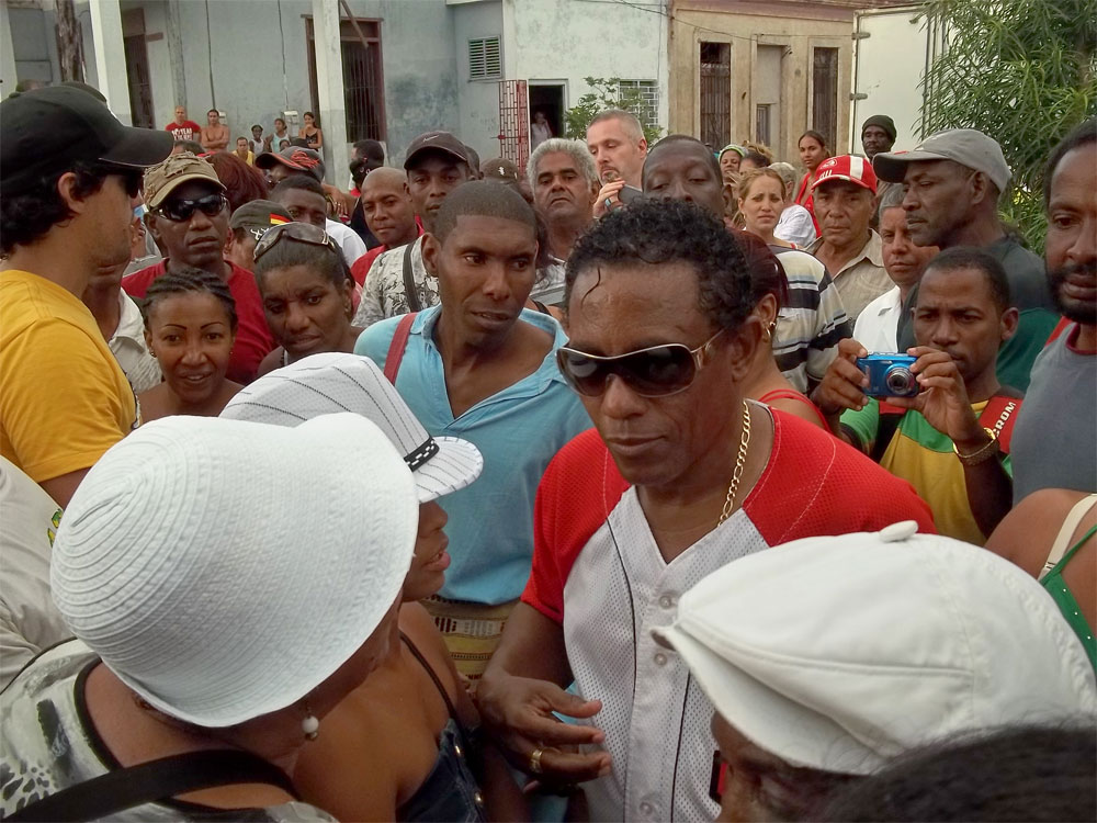 Mujeres, hombres y niños participaron en la grabación de hoy convocados por Cándido Fabré con el apoyo de la radio provincial que le dio amplia promoción al suceso cultural que reunió a cientos de santiagueros que arrollaron con Candido y la conga Garzón arriba.