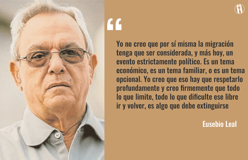 Cada época tiene su signo y sus circunstancias. Yo no creo que por sí misma la migración tenga que ser considerada, y más hoy, un evento estrictamente político. Es un tema económico, es un tema familiar, o es un tema opcional. Yo creo que eso hay que respetarlo profundamente y creo firmemente que todo lo que limite, todo lo que dificulte ese libre ir y volver, es algo que debe extinguirse.