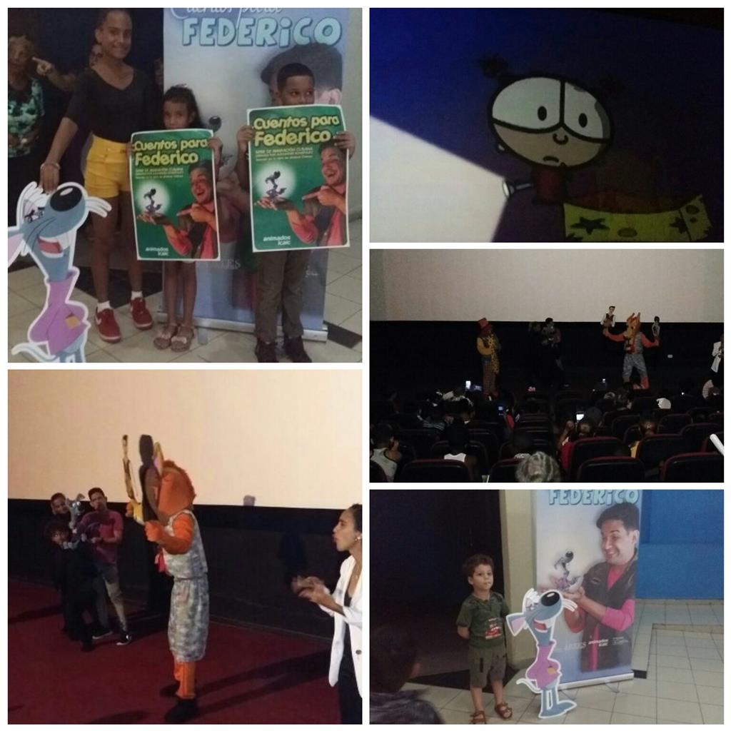 Este sábado fue una tarde donde la alegría contagió a todos, junto a la compañía Cascabel, Federico y Pipo pipo (Maikel Chávez) interactuaron los agasajados. Se proyectaron audiovisuales de Animados ICAIC con lengua de señas incluido, a cargo de la intérprete Massiel Suárez. Entres las obras exhibidas estuvieron: primer capítulo "El pollito pintor" de Cuentos para Federico; el capítulo "Pollito pito", de la serie Cuentos de Ñañasere dirigida por José Martín Díaz; cortometraje "Viva papi" dirigido por Juan Padrón; "Qué significa" de Ariel Dejá Ramirez; "El árbol de la vida" dirigido por Mario Rivas; "El agradecimiento del Jibaro" de Alexander Rodríguez; Fernanda de Mario Rivas...