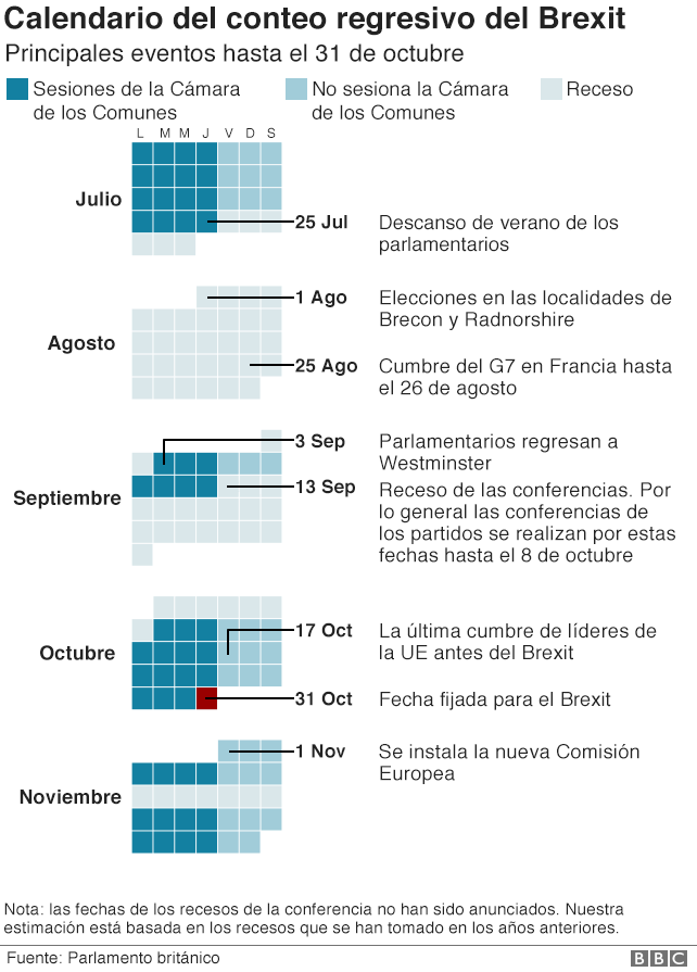 Ante este panorama, Boris Johnson ya formó un gabinete gubernamental repleto de brexiteers de tendencia radical. Decisión que pudiera responder a la idea de forzar unas elecciones anticipadas ante el posible bloqueo del Parlamento a la opción extrema del no deal.