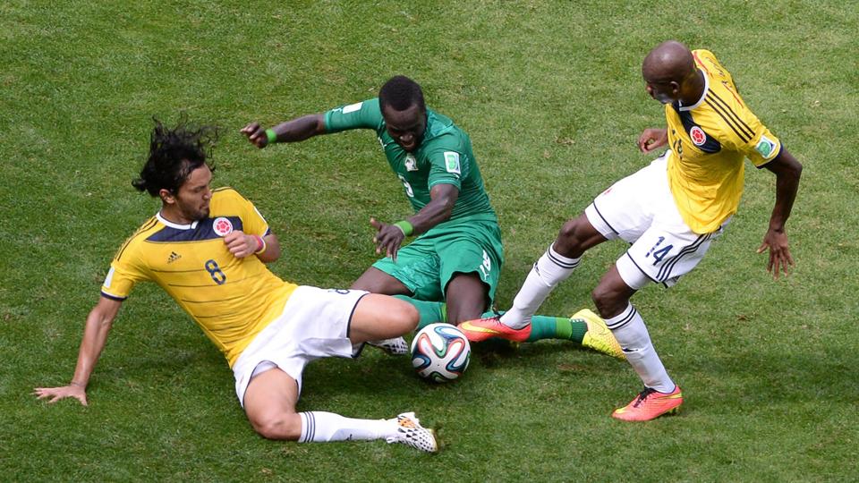 Colombia estaba replegada en su área sufriendo los envites marfileños cuando Serey Die perdió el balón ante Rodríguez y Quintero, después de recibir de Teo Gutiérrez, fue el encargado de poner el segundo en el marcador tras vencer en el mano a mano a Barry.