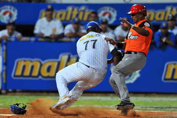 Hombres en primera y tercera sin outs. En cualquier pelota, eso se traduce en carrera, pero no en la nuestra. Borrero pegó un tubey y llegó a tercera por un wild pitch. Luego José Miguel consiguió la transferencia a primera y todo en bandeja de plata. ¿Qué pasó? Lo inexplicable. Se poncha Lunar y traen a Edilse Silva de emergente. ¿Qué podía ocurrir? Al cátcher se le escapa la bola y Borrero raudo y veloz se escapa hacia la goma, para ser esperado por el pitcher. Sin esfuerzo, sin deslizarse en home ni derribar al hombre que le esperaba con la bola en el guante. Cosa de niños.