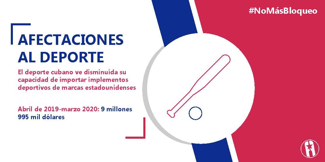 Al comentar la afectación causada por el Bloqueo a la preparación de los atletas cubanos rumbo a los Juegos Olímpicos de Tokio, el directivo indicó que «tenemos un financiamiento disponible para comprar algunos medios necesarios, pero no podemos obtenerlos directamente, pues muchos de esos, de las marcas homologadas, tienen componentes norteamericanos».