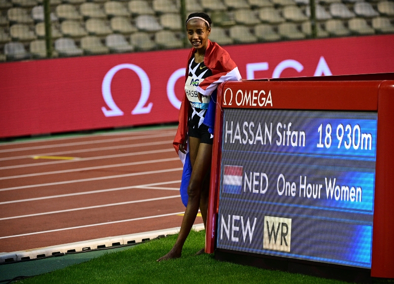 La holandesa Sifan Hassan quebró el récord de la hora recorriendo 18,930 kilómetros en 60 minutos para superar la marca que había establecido en 2008 la etíope Dire Tune Arissi (18,517 km).