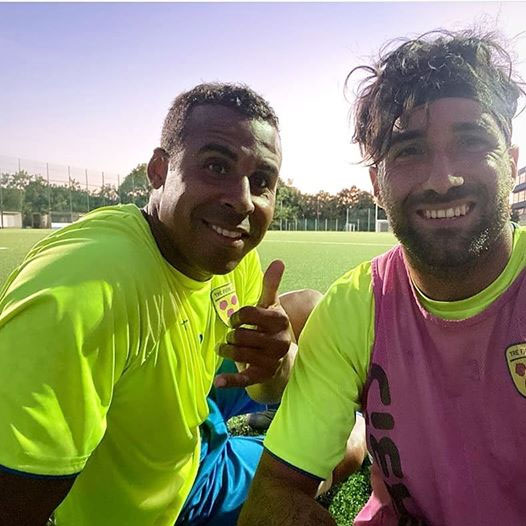 En algunas imágenes del partido jugado en un terreno neutral, en Suiza, se ve al cubano con el número 11 en el uniforme azul y amarillo del Tre Fiore participando en algunas acciones ofensivas.