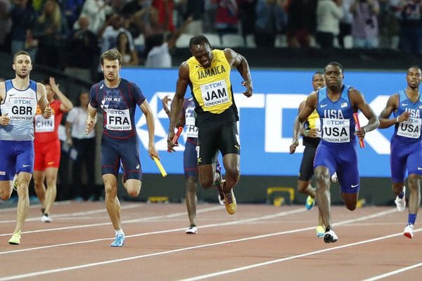 Gran Bretaña ganó la final del relevo 4x100m. Lo hizo con tiempo de 37.47 segundos, superando a las cuartetas de Estados Unidos (37.52) y Japón (38.04). Los británicos firmaron una excelente competencia, con un rendimiento excepcional pero las cámaras se fueron, otra vez, con Usain Bolt. El hombre que ganó once títulos mundiales en su carrera y que ahora se marcha, con las manos prácticamente vacías.
