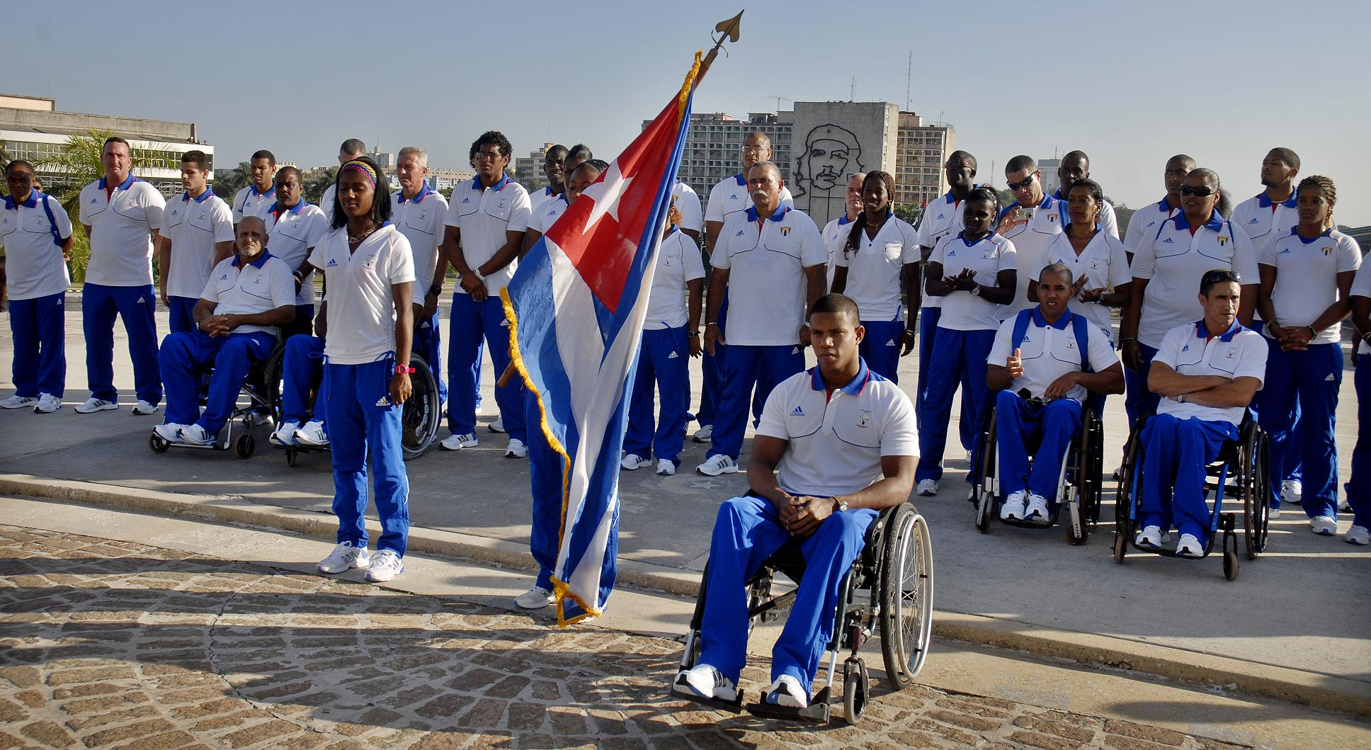 La delegación cubana que participará en los XIV Juegos Paralímpicos de Londres 2012, previstos del 29 de agosto al 9 de septiembre, fue abanderada en la mañana de este miércoles en ceremonia solemne efectuada en el Memorial José Martí, en la capitalina Plaza de la Revolución.