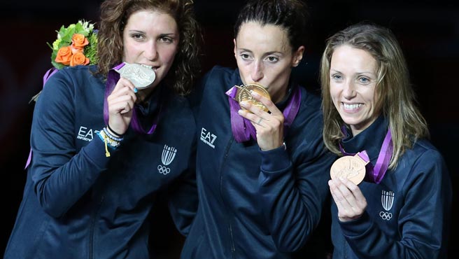 Elisa di Francisca (oro entonces), Arianna Errigo (plata) y la muy laureada Valentina Vezzali (bronce), más ahora Ilaria Salvatori, volvieron a la carga.
