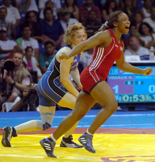 La luchadora cubana Katerina Vidiaux (división de los 63 kilogramos), 25 años de edad, ha llegado a los Juegos Olímpicos de Londres 2012 llena de entusiasmo, y por lo pronto este miércoles debutó por todo lo alto.
