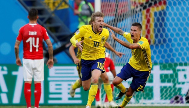 El gol del triunfo para los vikingos fue obra del volante Emil Forsberg, al minuto 66. Fue quien más lo intentó y, a jugadores así, el fútbol siempre los premia. Una salida del defensa central Víctor Lindelof hasta tres cuartos de campo contrario, acabó en balón para el jugador del Leipzig, quien desde la frontal del área, envió un potente disparo desviado por el zaguero suizo Akanji, que dejó descolocado al arquero Yann Sommer, para el 1-0 sueco.