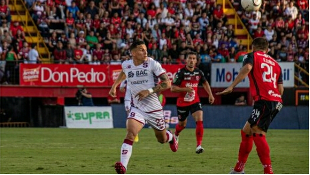 Corría el minuto 44 cuando Saprissa, de visita en el estadio Alejandro Morera, de Alajuela, aprovechó una de las pocas oportunidades que tuvo en el primer tiempo y Paradela tomó un rebote en el área chica para, a pesar de su pequeña estatura, anidar de cabeza el balón en la cabaña rival.