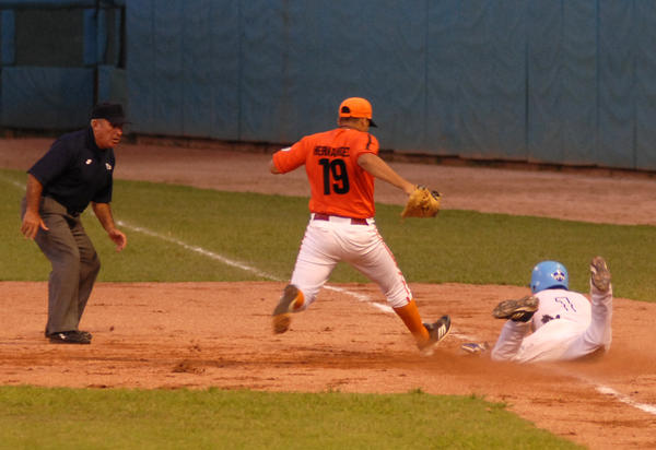 Los industrialistas de La Habana y los naranjas villaclareños continuaron empatados una jornada más en el cuarto escaño del certamen, ahora con foja de 38-32, idéntica a la de los vigentes campeones de Cuba, Ciego de Ávila, verdugo ayer 7-6 del sotanero Pinar del Río (33-37).