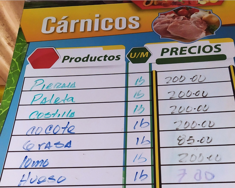 Precios de la carne de cerdo en el Mercado agropecuario de oferta y demanda (MAOD) en 19 y B, Vedado, La Habana (Foto: Luis René Fernández Tabio/ Cubahora)