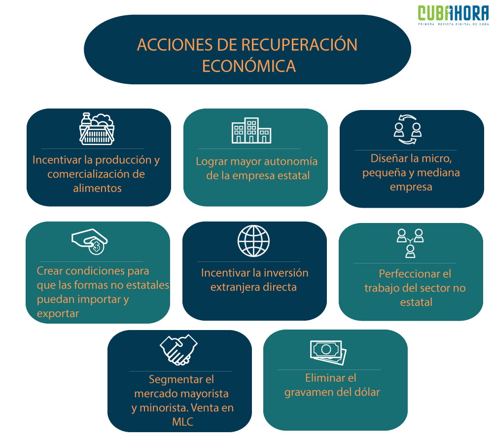 Aun así, Cuba ha sabido enfrentar con éxito una situación de crisis como lo es la pandemia de la COVID-19. Desde el 11 de junio, el gobierno anunció las medidas a implementar en la etapa de recuperación post COVID-19, agrupadas en 13 ámbitos y que se enfocan, sobre todo, en establecer las pautas para el regreso gradual a la normalidad. Entonces, por esta misma línea se hace necesario establecer la estrategia económica a seguir por el país en los próximos meses.
