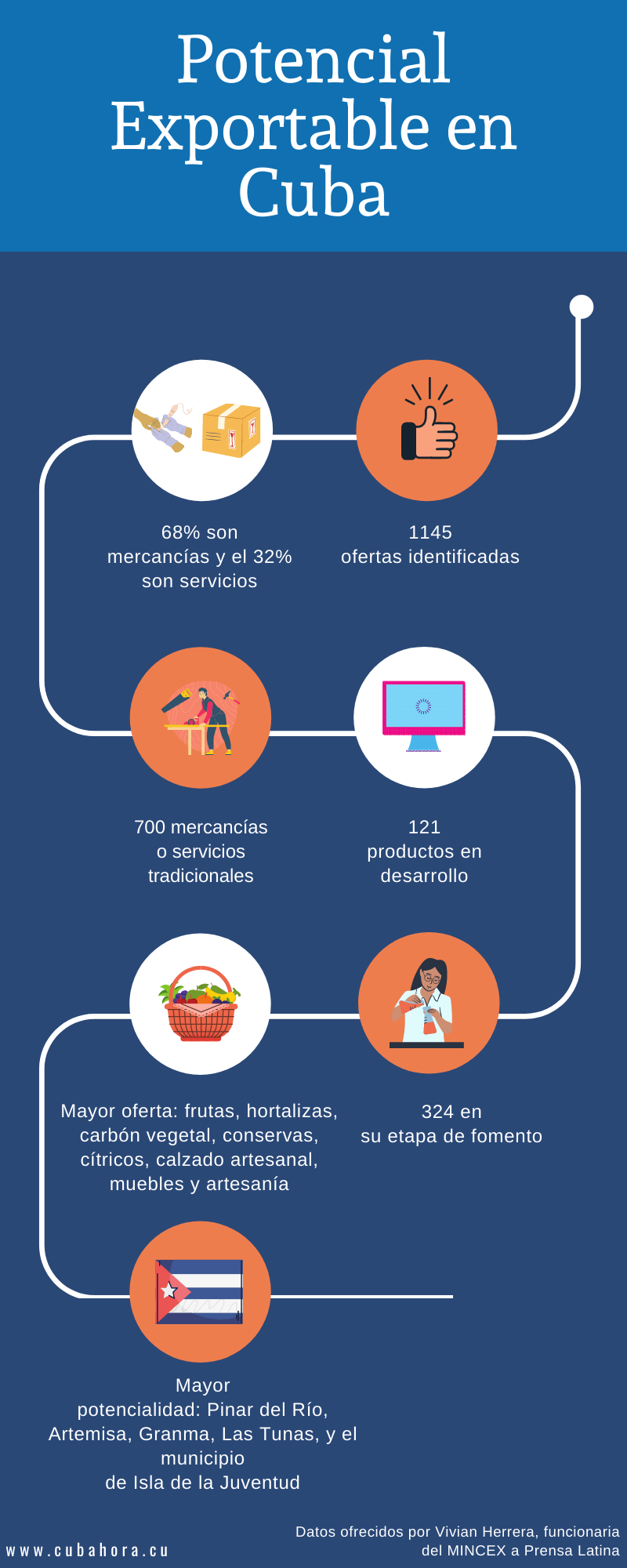 Desde todos los territorios del país se ha hecho un reconocimiento de sus opciones para la venta al mercado internacional. Según un reporte de la Agencia Cubana de Noticias, hasta el momento han sido identificadas 1145 ofertas con potencial.
