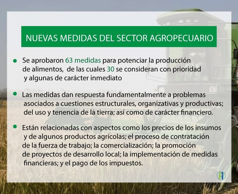 En este contexto, el pasado 13 de abril, en un encuentro realizado entre el gobierno cubano y productores agropecuarios, expertos y científicos de diferentes ramas, fueron anunciadas 63 medidas que buscan potenciar la producción de alimentos. De ellas, 30 se consideran de prioridad y algunas de carácter inmediato. Pero, ¿cómo se llegaron a estas acciones?