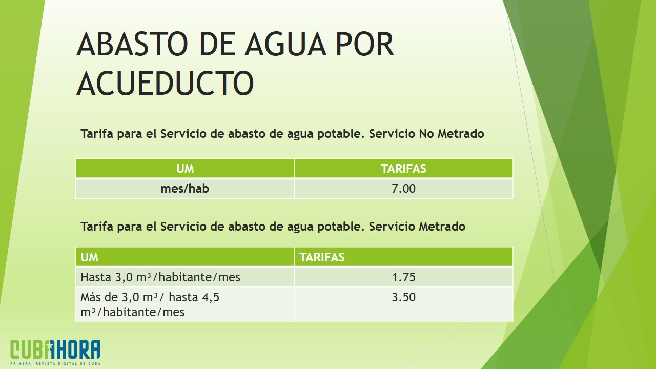 A partir del Decreto 24 “Facultades para la aprobación de precios y tarifas”, del 25 de noviembre de 2020 se fijan las siguientes tarifas para el abasto de agua a la población.