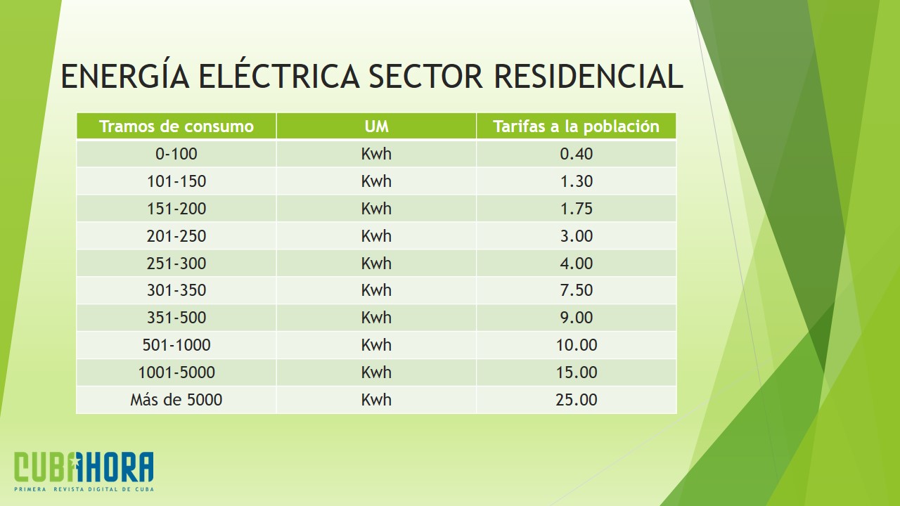 Entre los servicios a aumentar su valía se encuentra la energía eléctrica. Actualmente por el tramo de 1-100 kWh de electricidad se paga 9 centavos, un costo altamente subsidiado por el presupuesto estatal. Mientras que a partir del próximo mes, el precio por la misma cantidad subirá a 40 pesos.