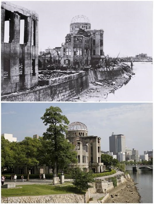 El 6 de agosto de 1945, a las 8:15 locales, un bombardero B-29 estadounidense llamado "Enola Gay" lanzó sobre Hiroshima la bomba atómica "Little Boy"; tres días después, otra bomba, "Fat Man", cayó sobre Nagasaki, lo que condujo a la capitulación de Japón el 15 de Agosto.