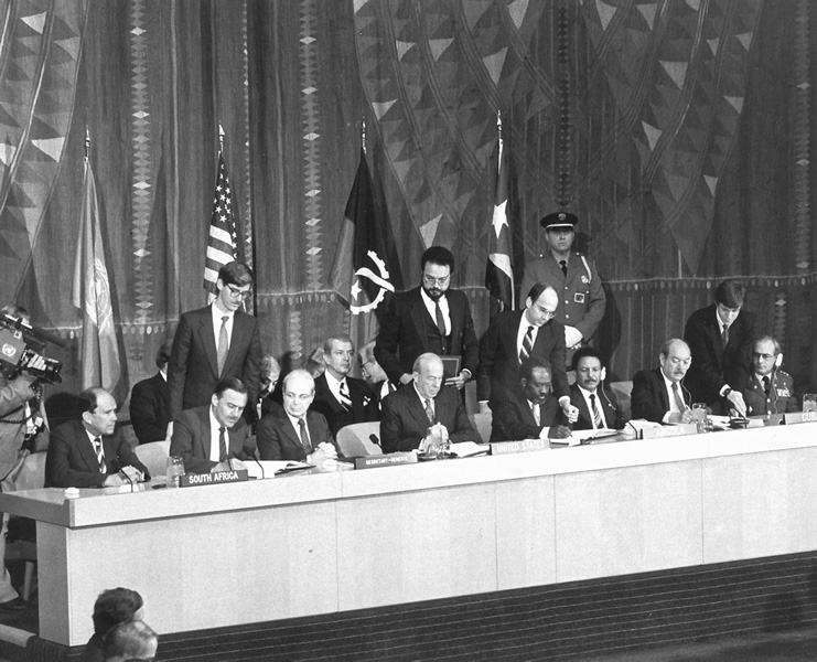Estados Unidos fue constreñido a comprometerse en organizar un encuentro entre los países que participaban directamente en el conflicto: Angola y Cuba de una parte, Sudáfrica de la otra. Durante todo en año 1988 se realizaron diez reuniones, en la que se negociaban los términos del Acuerdo, hasta su firma definitiva el 22 de diciembre en Nueva York.