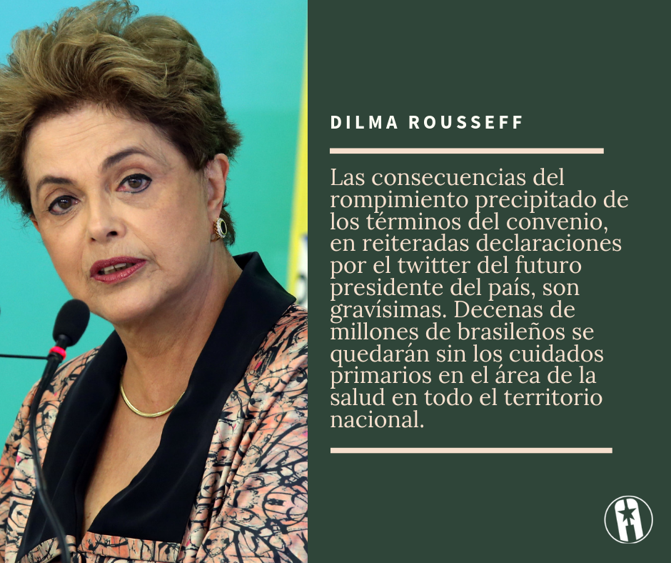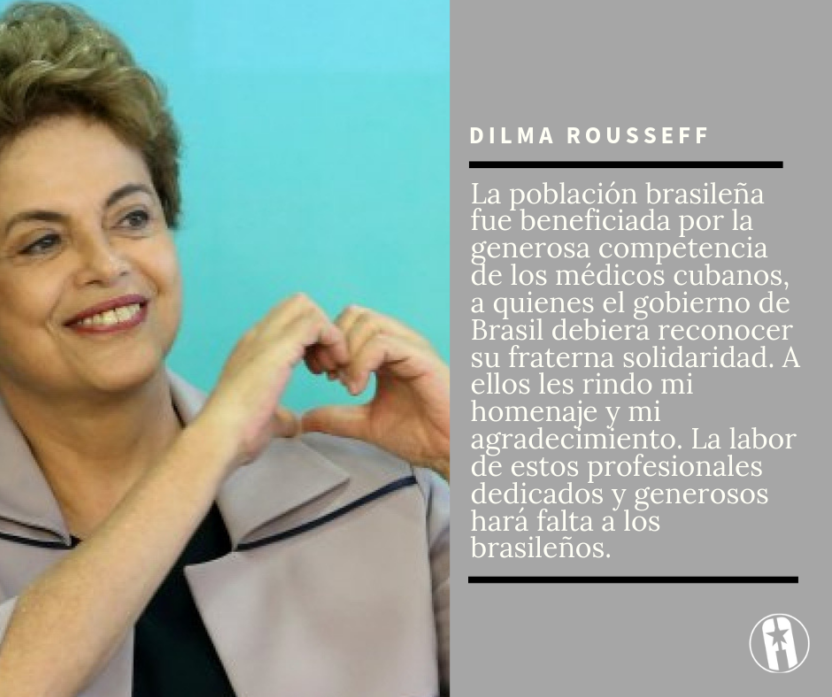 Hoy se encuentran en Brasil más de 8 400 colaboradores de la salud, laborando en el Programa que impulsara la ex presidente Dilma Rousseff, quien también apoyó la posición de Cuba.