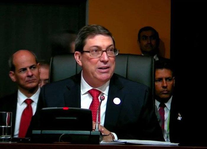 El canciller cubano invocó en el auditorio la declaración de América Latina como zona de paz, firmada por todos los presidentes de la región en la Cumbre de la CELAC en La Habana en el 2013.