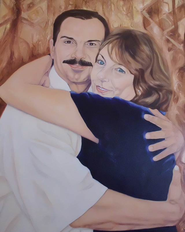 Orgullosa, interrumpió el diálogo para mostrarnos el detalle más reciente que recibió de su esposo. Un hermoso cuadro que ahora adorna su sala y en el que aparecen ambos, abrazados. Esta vez, la pintura no es de su autoría, sino de la de un buen amigo, Oscar López, independentista puertorriqueño y compañero de prisión en Terra Haute, Indiana.