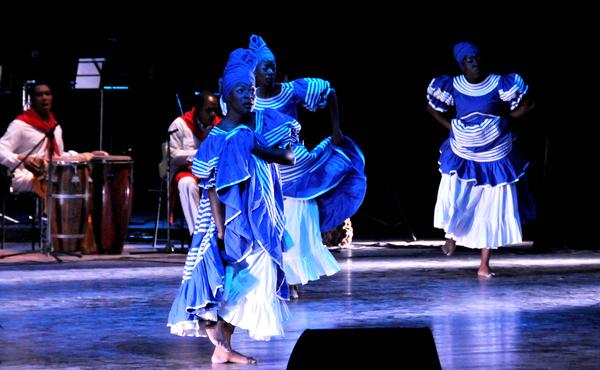 Integrantes de la compañía Raíces profundas, durante la gala en homenaje por el 40 aniversario del establecimiento de las relaciones diplomáticas entre Cuba y Barbados, Trinidad y Tobago, Guyana y Jamaica, y el Día Cuba-Caricom, en la Sala Covarrubias, del Teatro Nacional de Cuba. (Foto: Omara García Mederos/AIN)