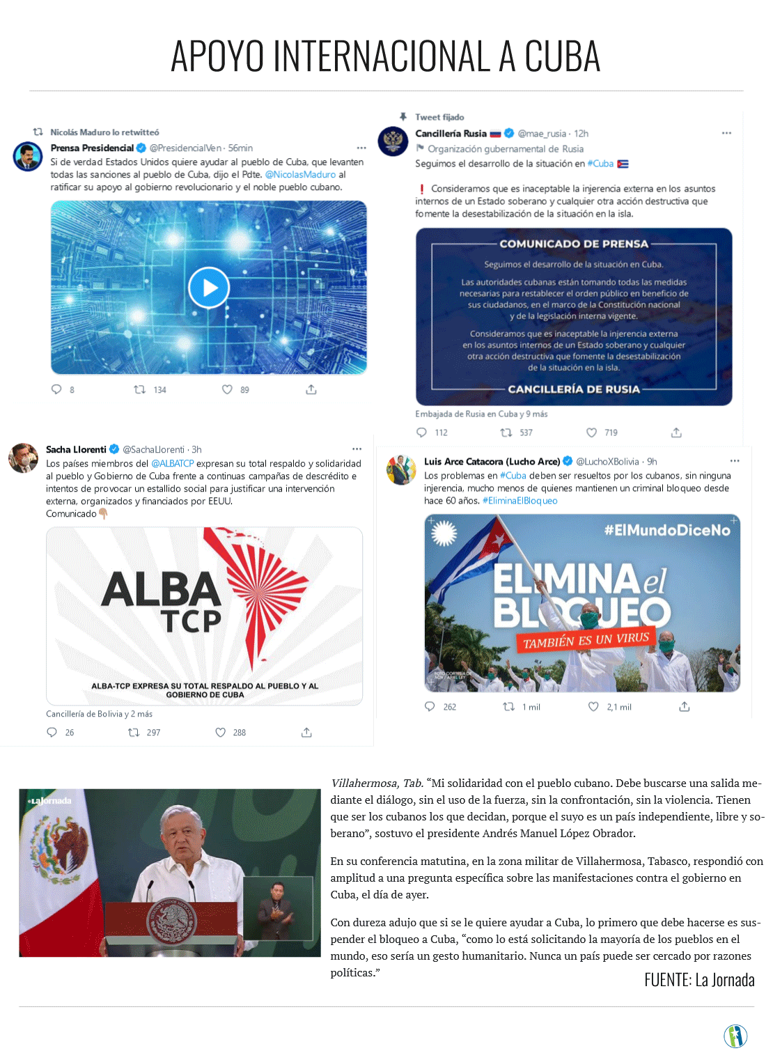 “Como el alcance de esa campaña fue nulo, se produjeron cambios en el accionar. Ayer en Cuba no hubo un estallido social, ayer en Cuba hubo disturbios y desorden causados por una operación comunicacional que se prepara desde hace tiempo a la que se destinan recursos multimillonarios y plataformas tecnológicas con fondos del Gobierno de los Estados Unidos, algunos declarados y otros de sus servicios especiales”, aclaró Rodríguez Parrilla.