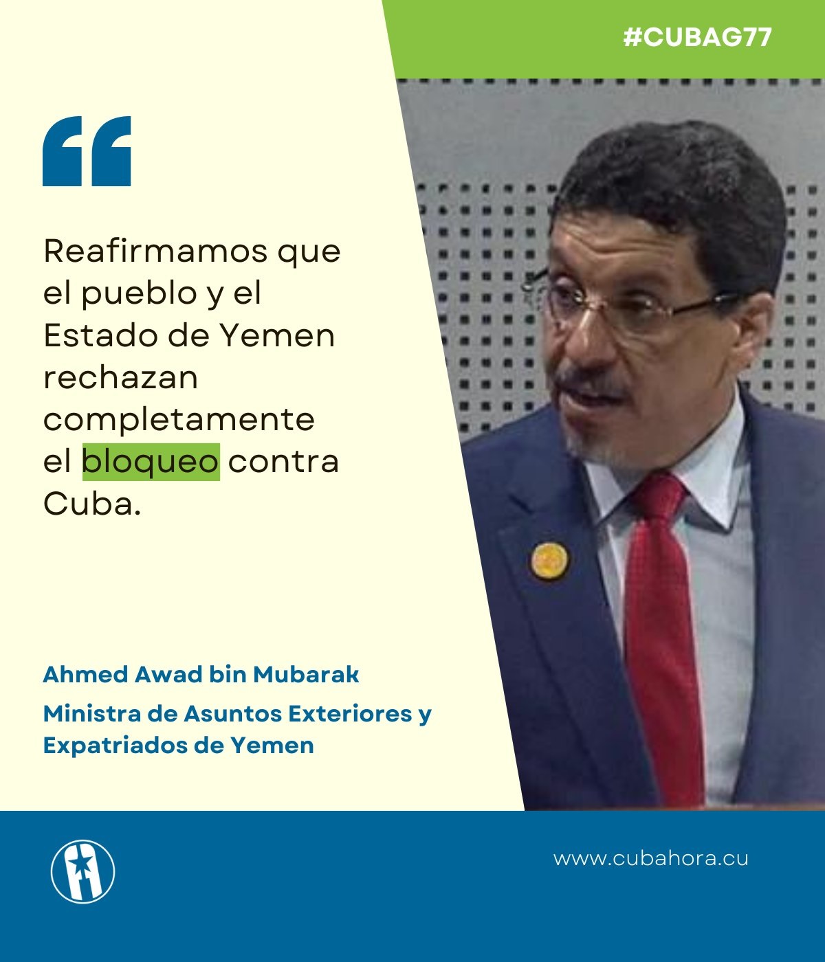“En el transcurso de este año, Cuba también ha representado al G77 y defendido sus posiciones en varios eventos internacionales relevantes. En tal sentido, el presidente cubano ha representado personalmente y promovido los intereses, posiciones y propuestas del Grupo en reuniones internacionales fuera del marco de Naciones Unidas y del ámbito de acción tradicional del G77.