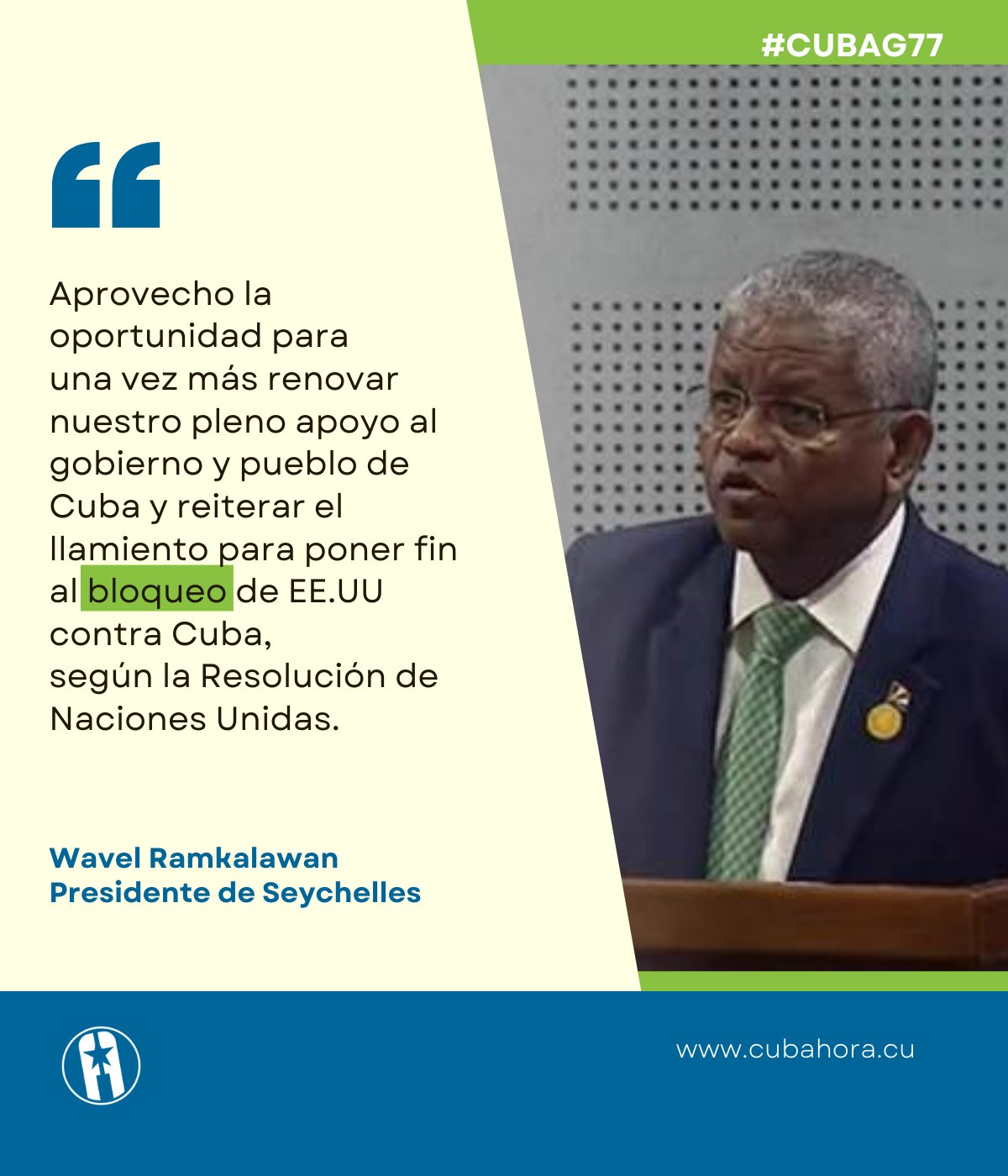 “De hecho, aspiramos a que la denuncia del bloqueo contra Cuba y la solidaridad con nuestro país, sean de los temas más mencionados en los discursos que este año se pronunciarán en el Debate General”.
